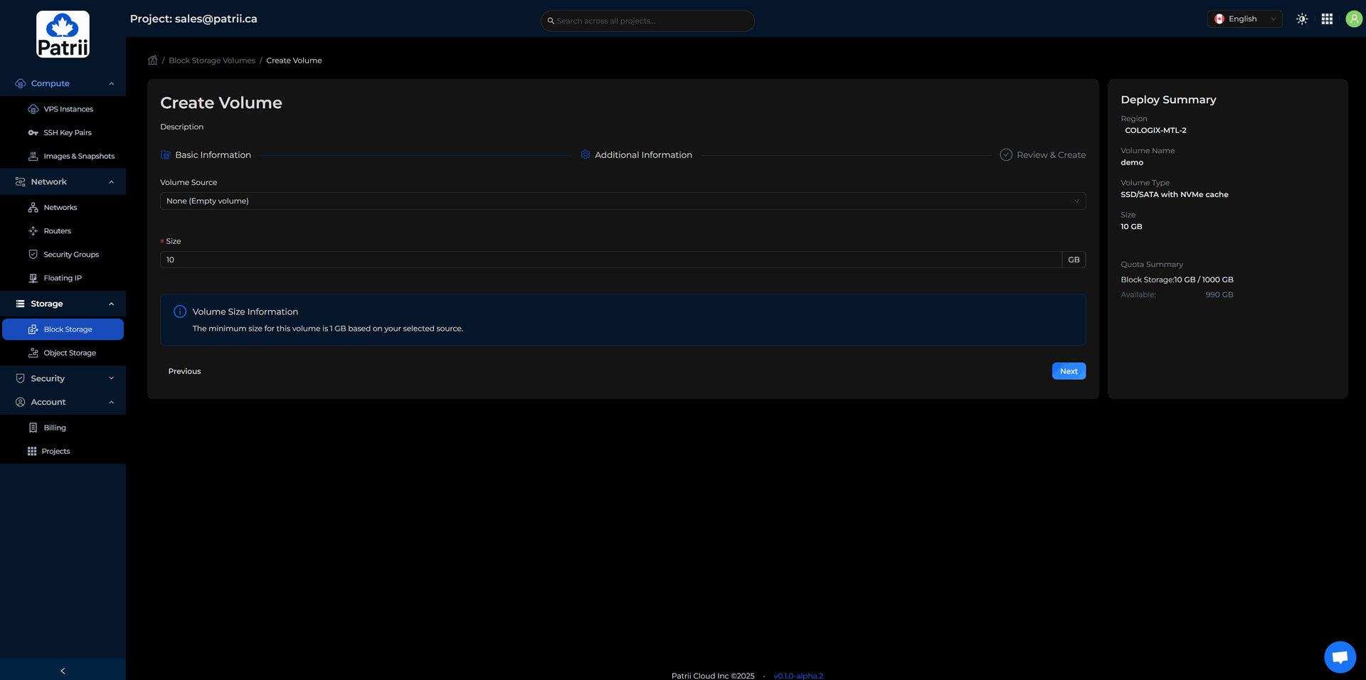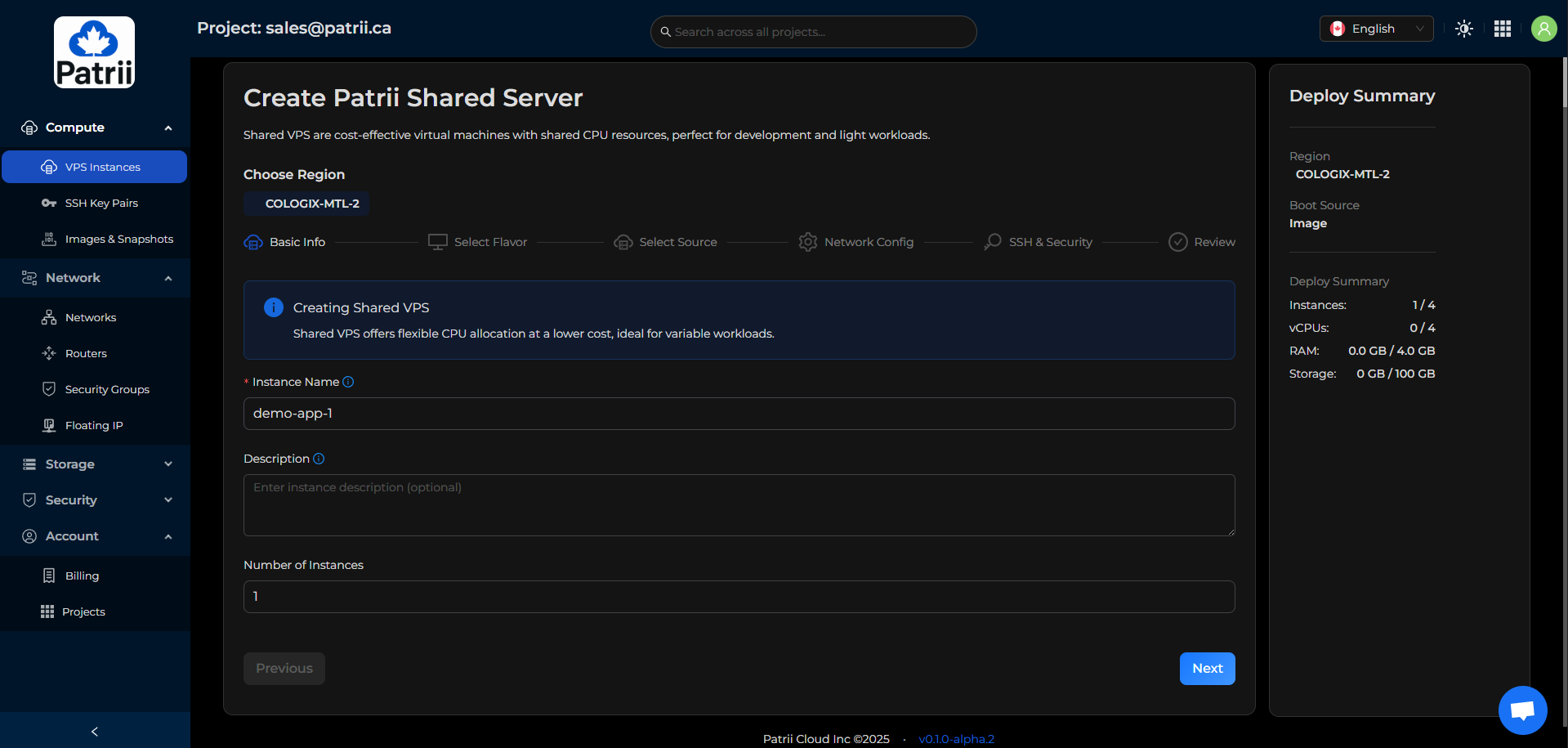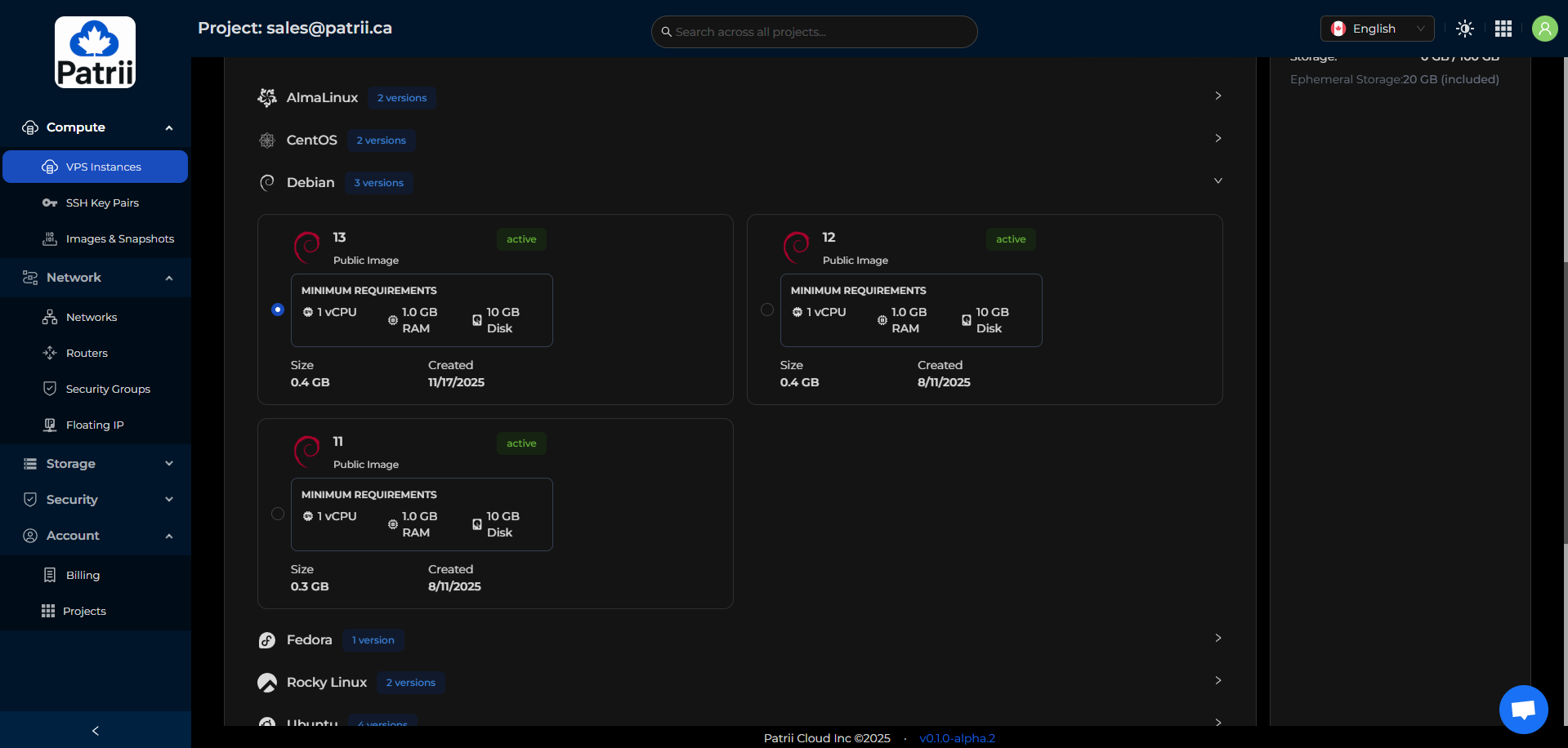 Patrii Cloud uses prepaid quota during alpha so you can reserve the monthly resources you plan to use.