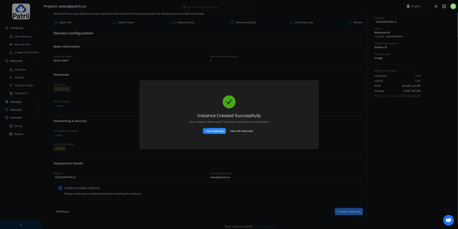 Go to Compute → VPS Instances → Create Instance → Shared VPS.