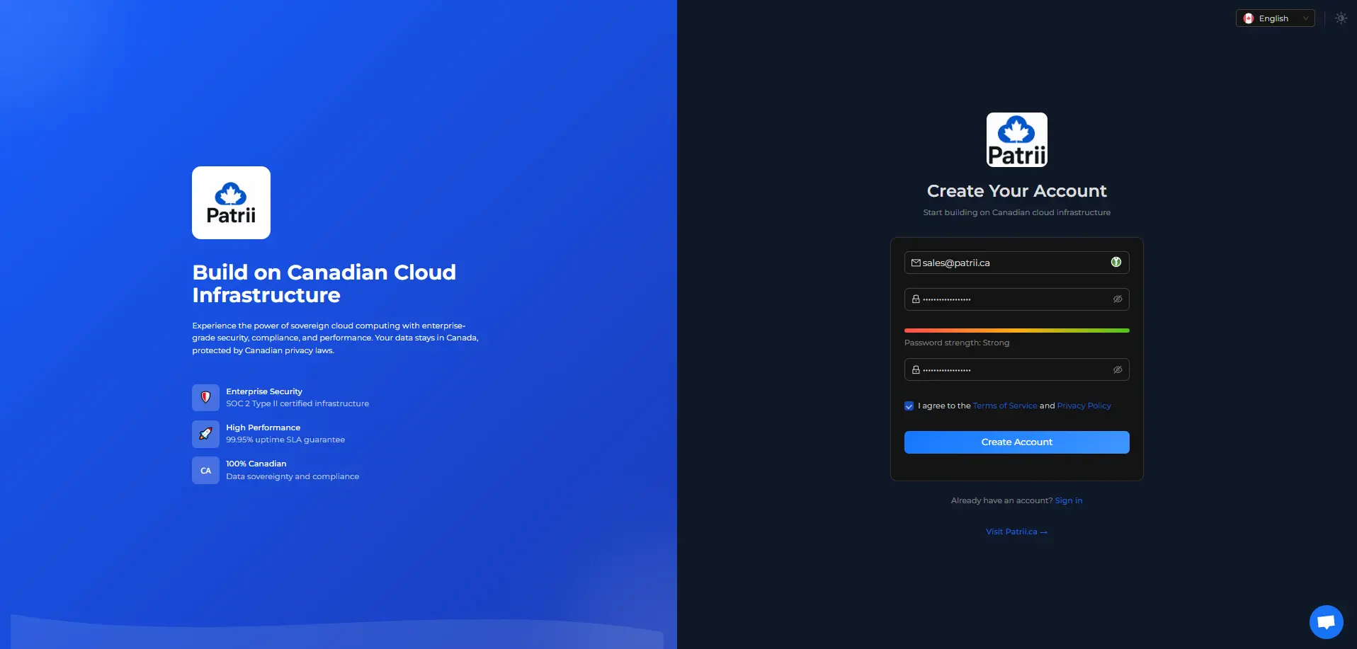 Step 1 – Create Your Patrii Cloud Account